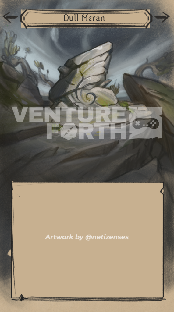 Back on track, all I needed to do now was give this place a name. I’m using Old and Middle English words as the foundation for inventing new words and phrases, so the words ‘duelle’ (duel) and ‘mymerian’ (remember) become a geographic point of interest called ‘Dull Meran’.